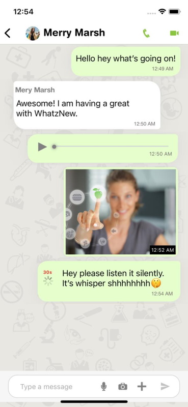 • WhatZNew keeps your messages audio, video and pictures safe from hacker attacks.